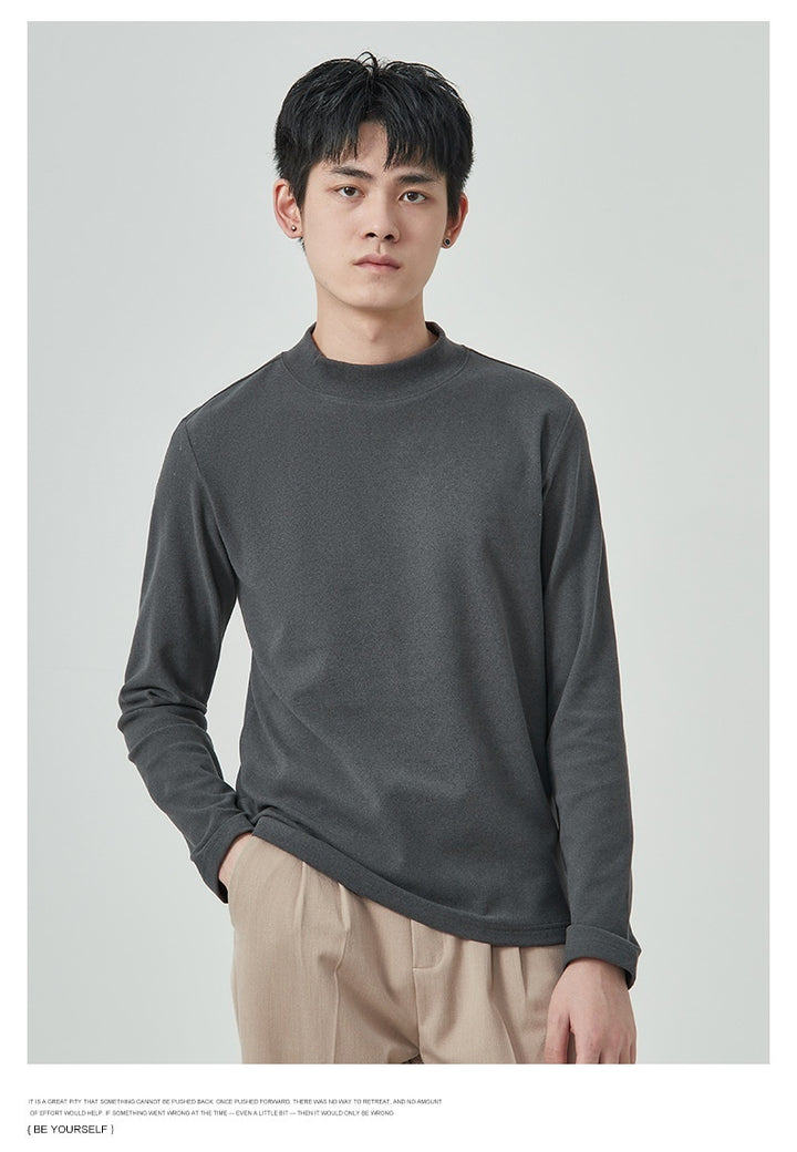 Autumn And Winter Men's High Quality Dralon Half-high Collar Long Sleeves T-shirt