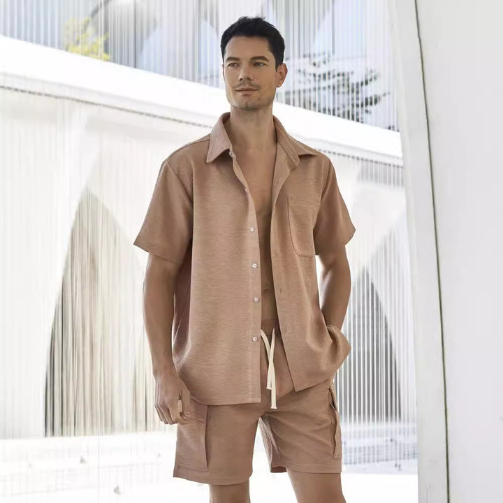 Elastic Waist Shorts Plain Young Two-piece Set