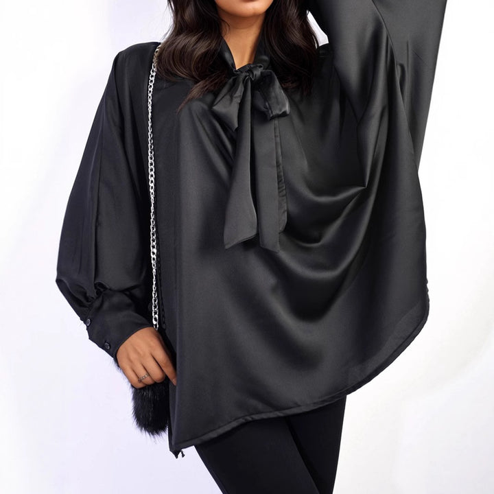 Fashion Bowknot Lace-up Long Sleeve Loose Shirt