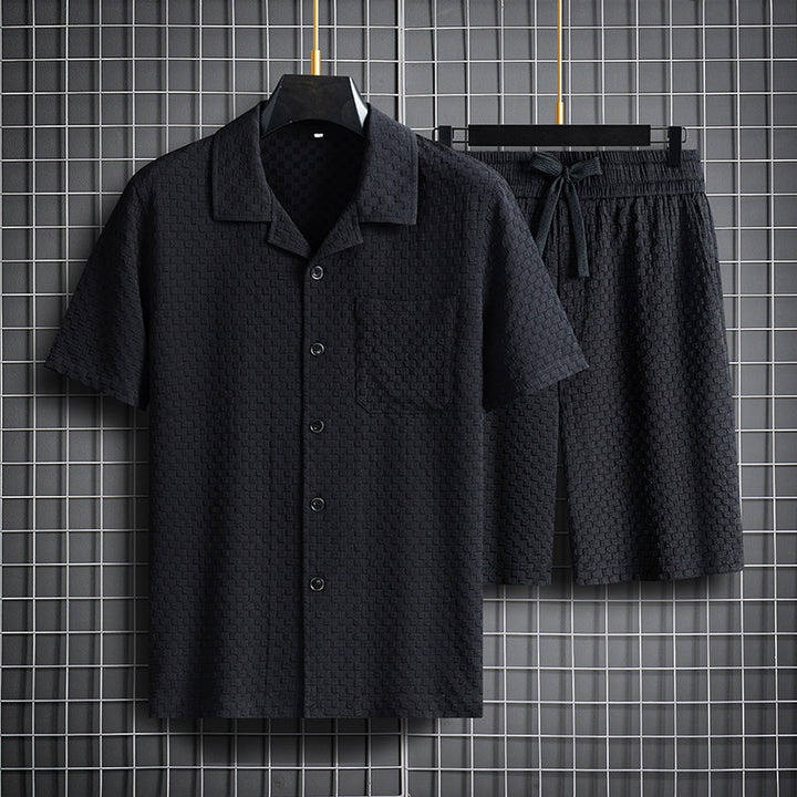 Men's Lapel Short Sleeve Shirt & Shorts Two-Piece Set