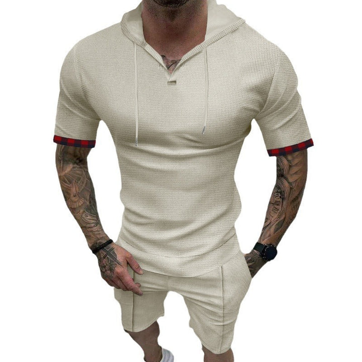 Waffle T-shirt Men's Sports Casual Short Sleeve Shorts Suit